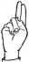 На ћирилици написано БРАНИСЛАВ ДОРОНТИЋ састоји се из 17 слова [?]. Исписано ћириличном једноручном азбуком за глувонеме: